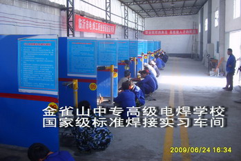 电焊学校首选山东临沂金雀山中专高级电焊培训学校开设:普通焊接班、特种焊接班、集装箱焊接班、高级焊工班、锅炉压力容器焊接专修班,专业从事电气焊、氩弧焊、二氧化碳保护焊、铜焊、铝焊、塑料焊、等离子切割、气焊、气割的大型焊接技术培训的中等职业学校,是临沂市中级焊工、高级焊工、锅炉压力容器电焊工的培训及职业技能培训鉴定考核基地。建校17年来先后被 上海龙工、中集集团、太平货柜授予焊工定点培训基地”。学校常年招生、随到随学、包教包会、校企联合,100%安置工作,入学即签订《就业安置合同》毕业颁发全国通用、出国有效、网上可以查询的《职业资格证书》、《特种作业人员操作证》《山东省劳动和社会保障厅培训证书》,优秀学员还可以经锅炉压力容器焊工考核委员会考核合格后,可取得相应的《锅炉压力容器特种设备作业人员证》。 学校建有国家级标准焊接实习车间2处,可同时容纳400名焊工实习操作。学校的实习设备齐全先进拥有100余台铜芯交流电焊机、数字化CO2气体保护焊电焊机、数字化高频引弧氩弧和直流两用电焊机、交流氩弧电焊机、直流氩弧焊机、等离子切割机、手动切割机,仿型切割机、管子坡口机、……