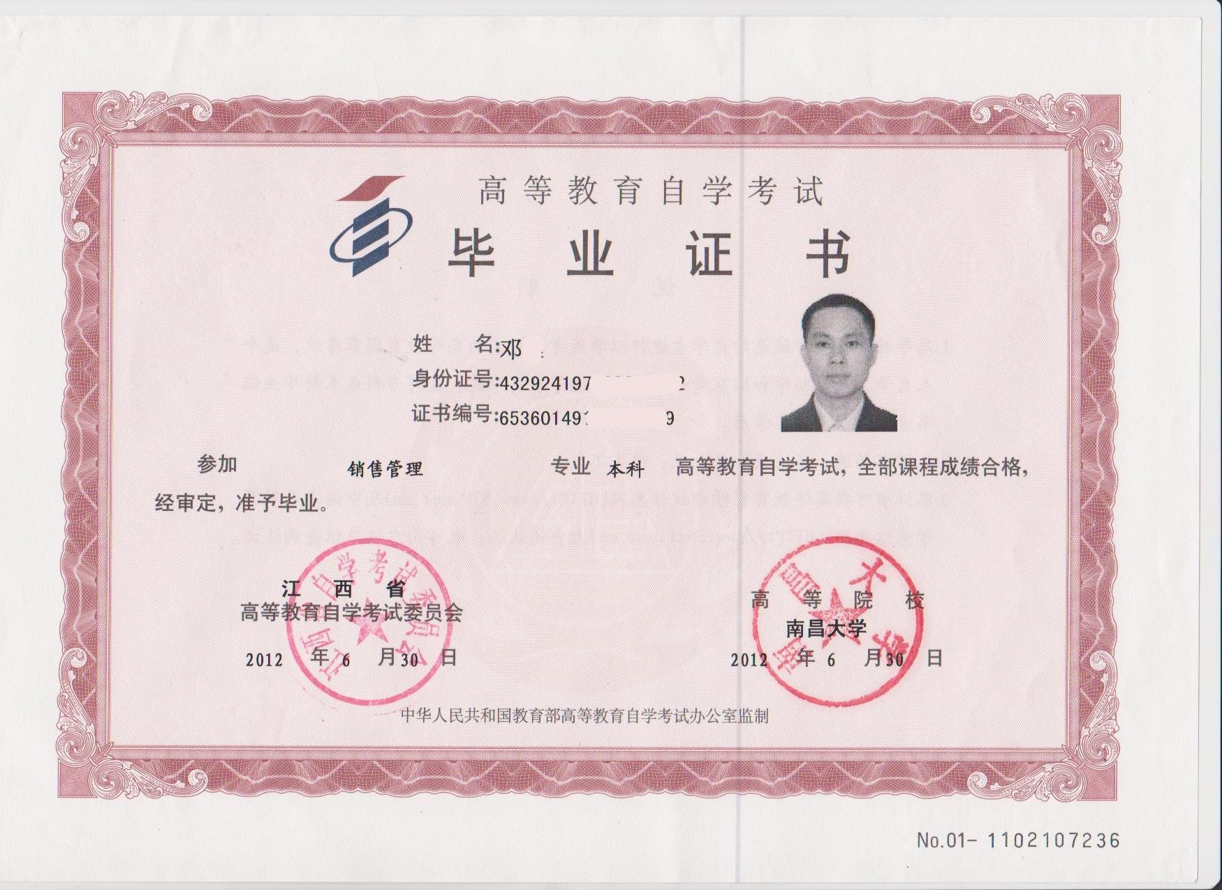 自考毕业证一年发…