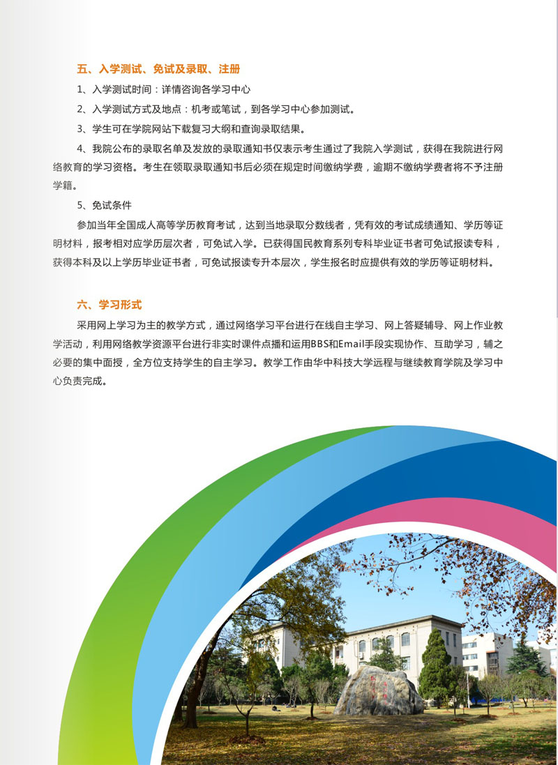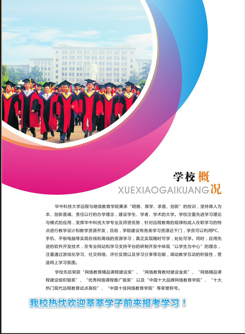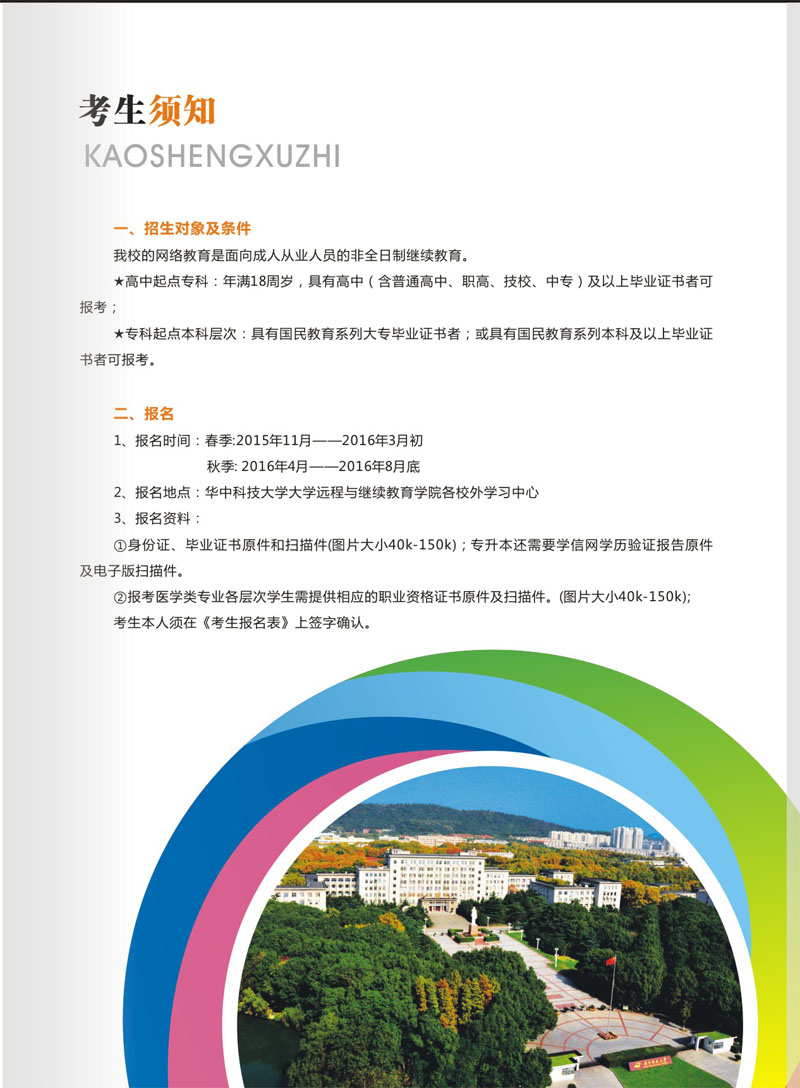 2016年华中科技大学网络教育招生简章介绍如下: